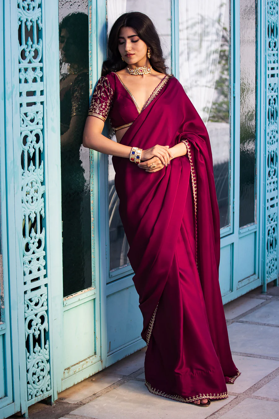 Satin Embroidery Saree